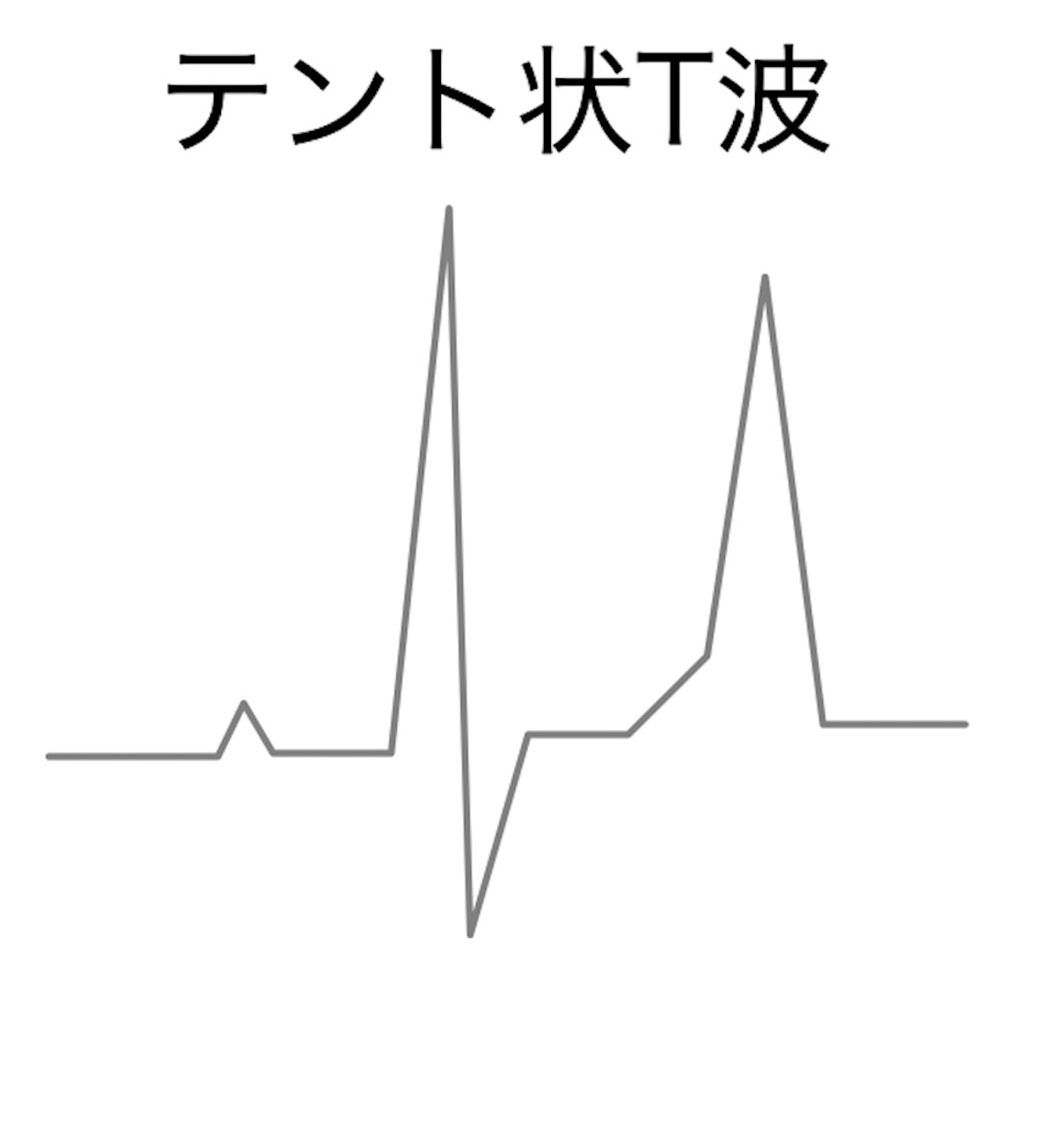 - 再分極異常によりT波が狭く、高くなるテント状T波