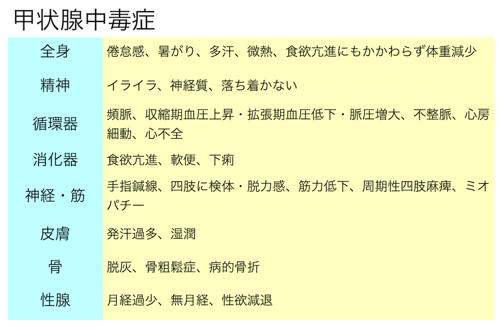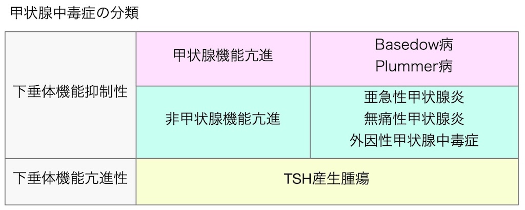 - 甲状腺中毒症と甲状腺機能亢進症は同一ではない(下表参照)