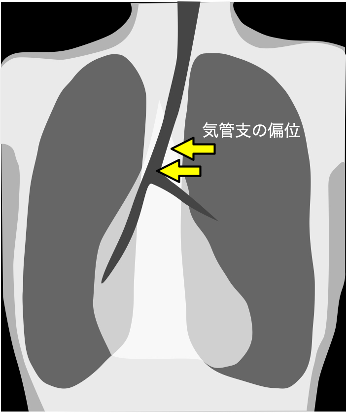- まれに両側性緊張性気胸となることがあり左右差がないため診断が困難