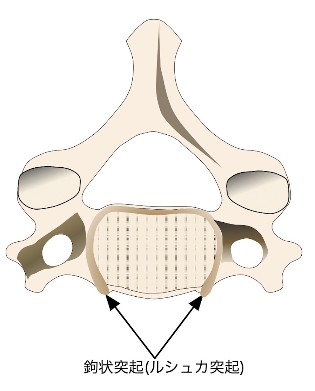 - Luschka関節 第3頸椎から第7頸椎の椎体の上面で、後外側縁上方に突き出す突起を鉤状突起またはLuschka突起と呼ぶ。このLuschka突起と上の椎体が接接する面をLuschka関節、または項椎関節と呼ぶ