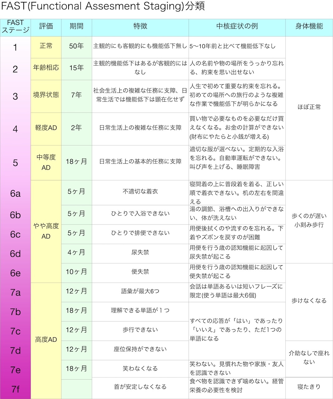 - 高度の認知障害では、基本的ADLが自立せず介助が必要となり、発語が乏しく、簡単な言葉も理解できず、歩けず、座れず、首が安定しなくなって寝たきりとなる