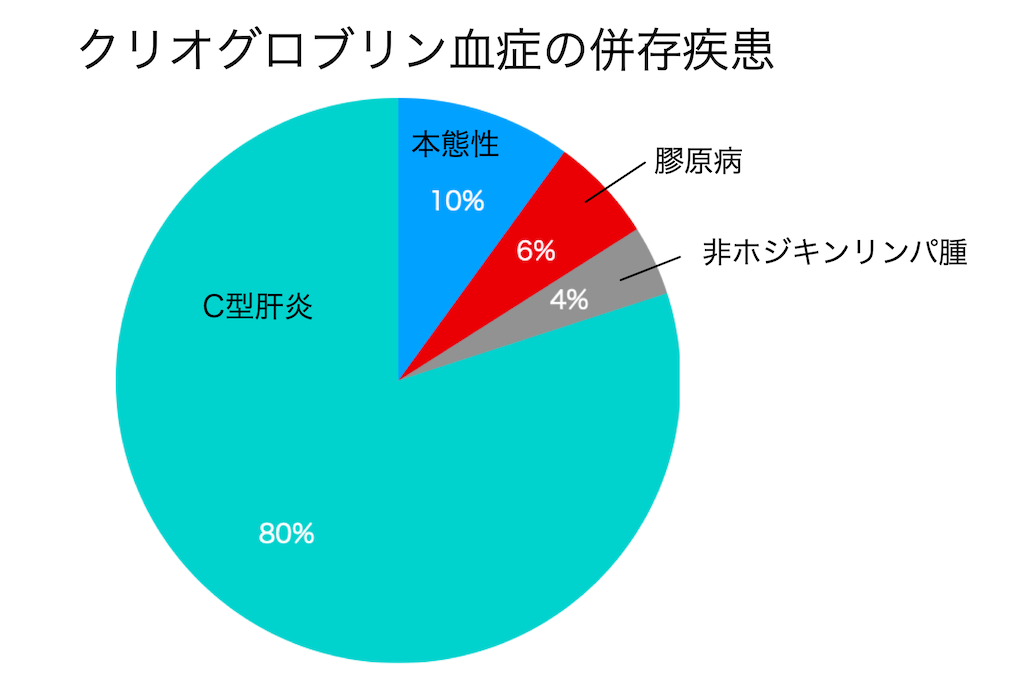 C型肝炎ウイルス感染症では40〜60%、膠原病では15〜25%がクリオグロブリン血症を続発する
