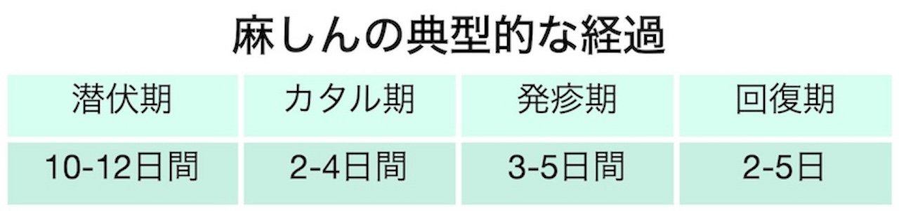 - 典型的な経過は、カタル期、発疹期、回復期に分けられている