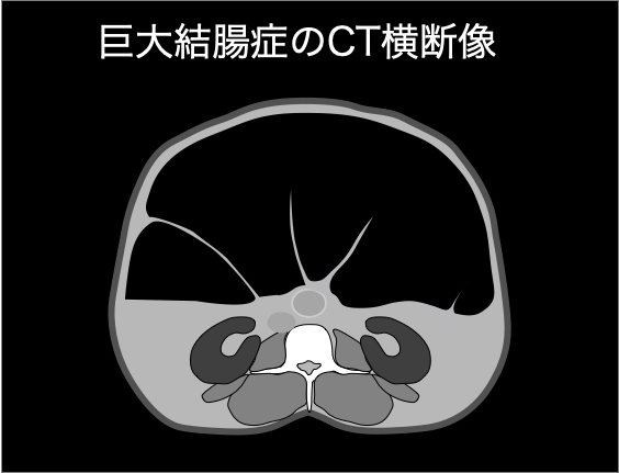 - 悪性腫瘍や捻転などの機械的閉塞を伴わないにもかかわらず、大腸が病的に拡張している状態