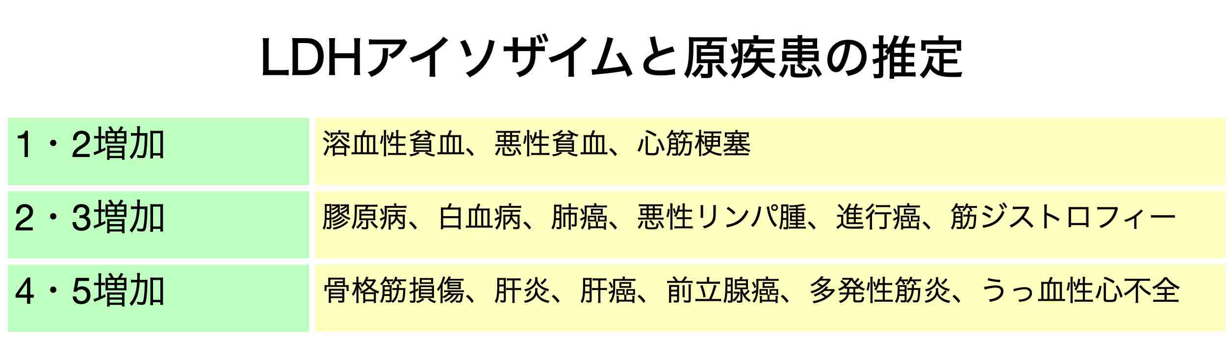 ・LDH増加はいずれかの臓器の細胞障害を示す